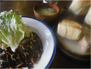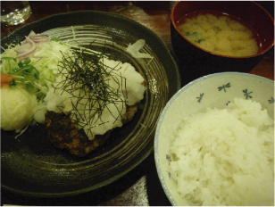 ハンバーグにお味噌汁。