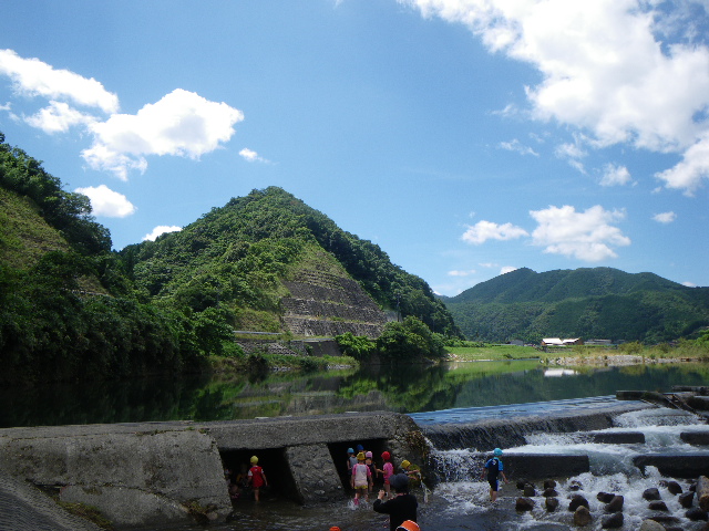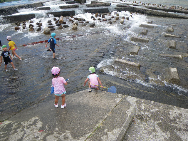 園児たちと一緒に川遊び。
