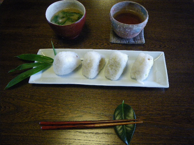 初日お昼にご馳走になったオムスビ達。