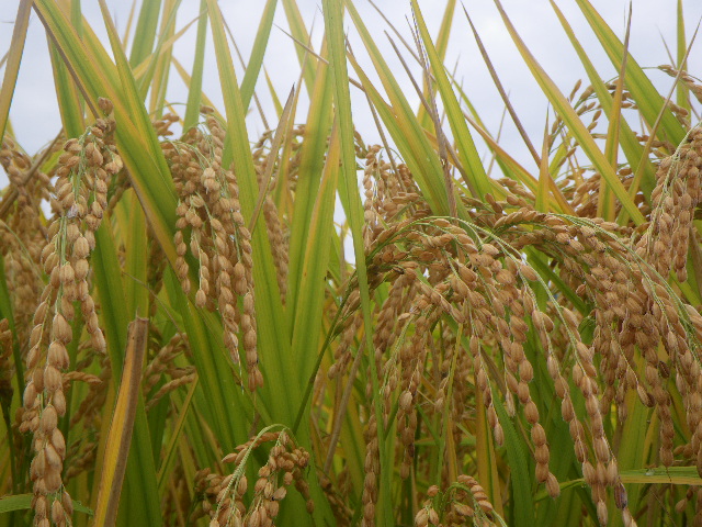 黄金に輝く稲穂達に向かって