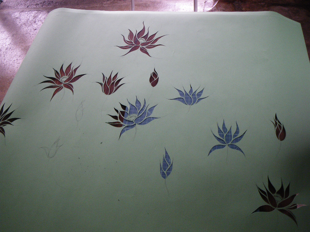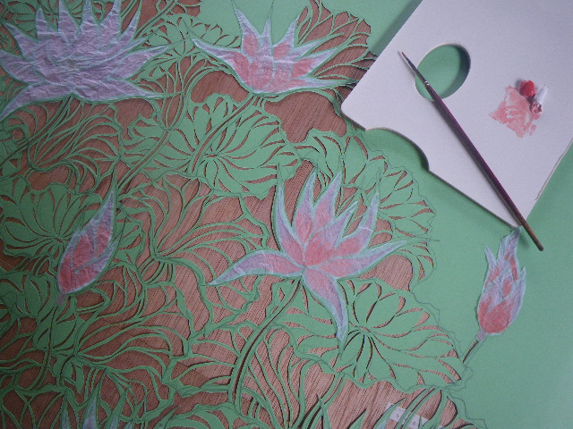 花に和紙を貼り