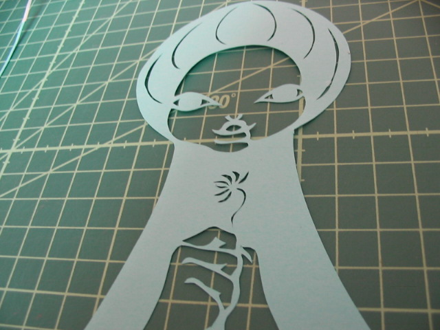人物と照らし合わせながら下書き、カット。