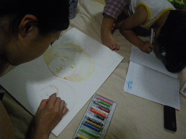 親と子の似顔絵大会。
